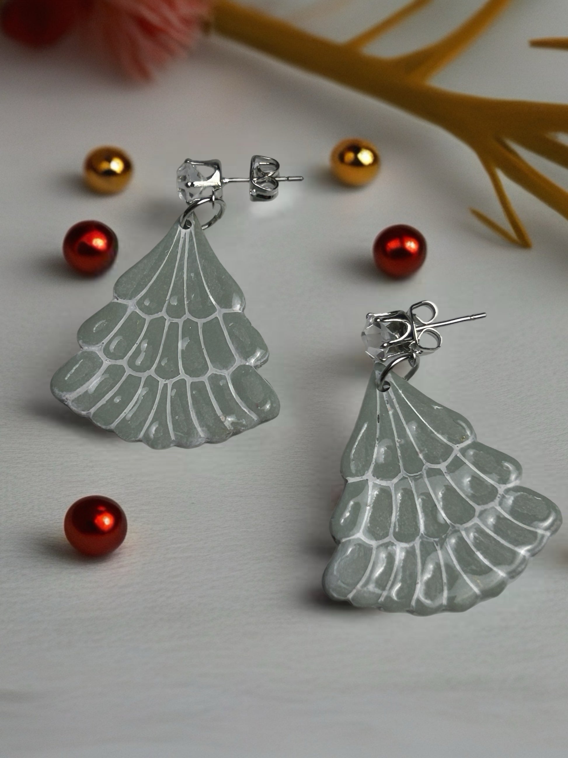 Handmade polymer clay earrings - Succulent, White Lined, Christmas Tree with Silver, Faceted Glass Post, 6 Prong Set